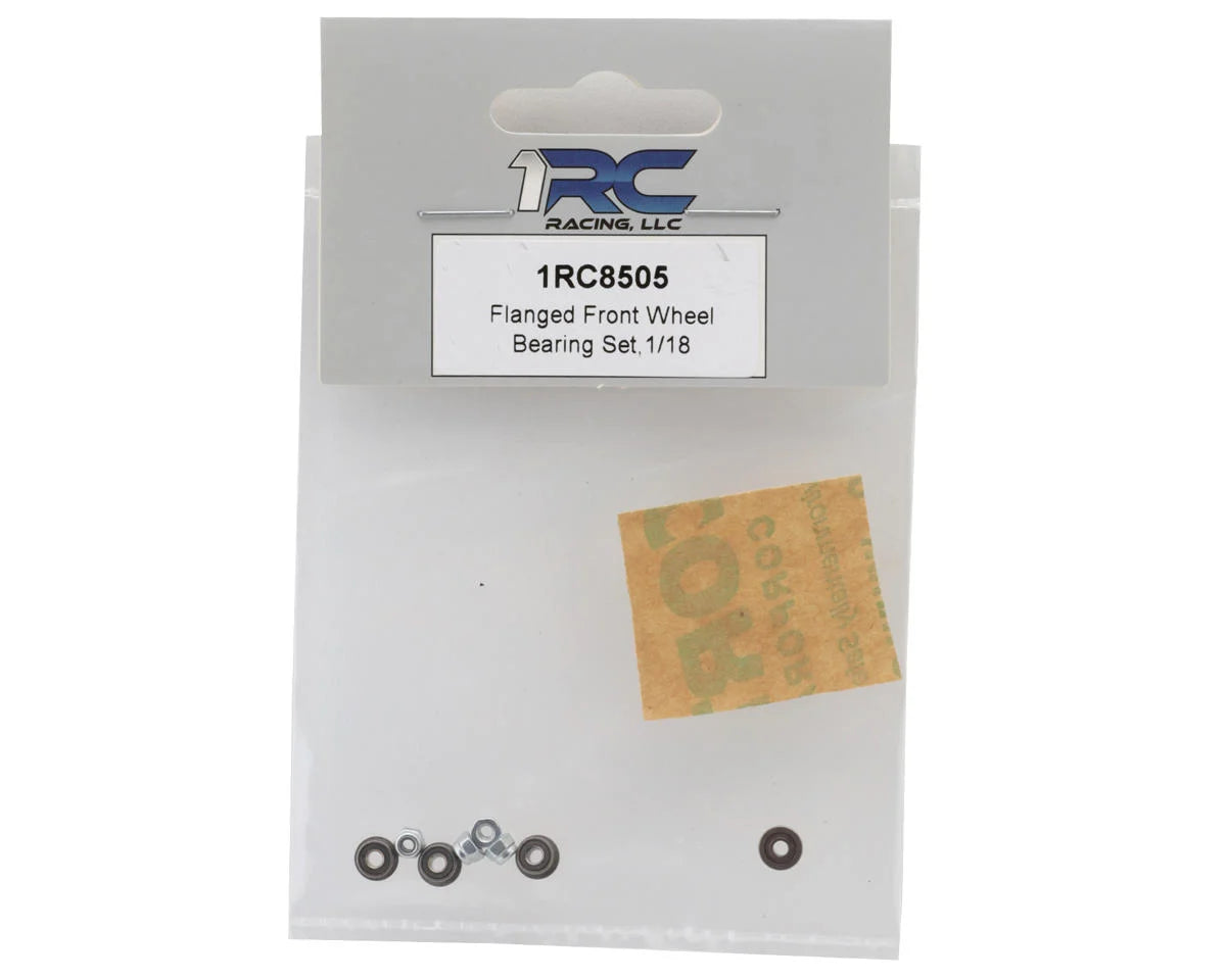 1RC Racing 2x5x2.5mm Flanged Front Wheel Bearings. This is a replacement bearing set intended for the 1/18 1RC chassis line.
