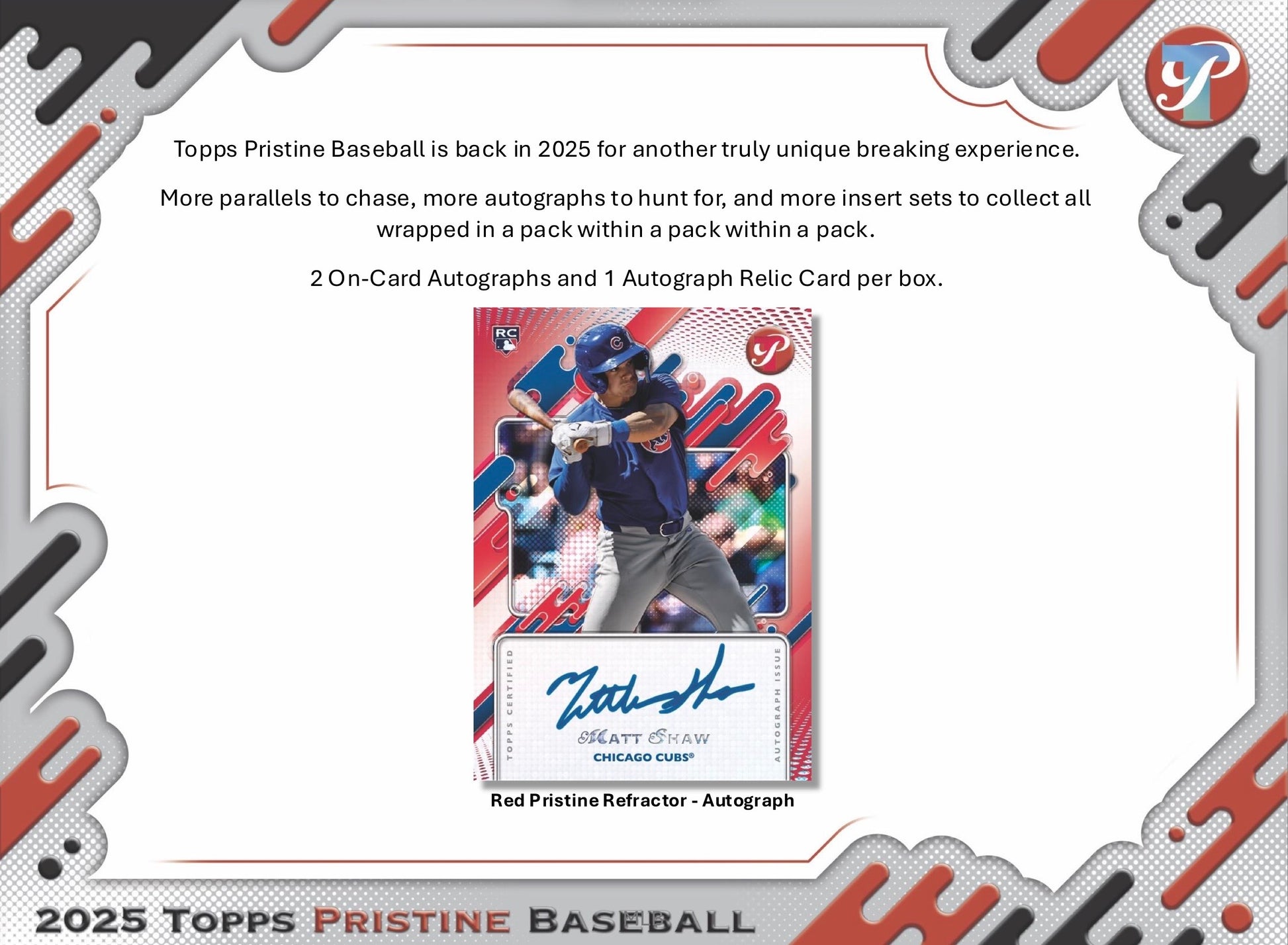 - 2025 Topps Pristine Baseball returns with the signature pack-within-a-pack build and a crisp chrome look that continues to separate the brand in the Hobby!