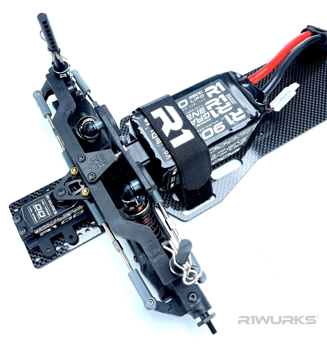 Introducing a lightweight battery strapping solution for the R1 Wurks DC1 Tapered carbon fiber chassis or similar applications.