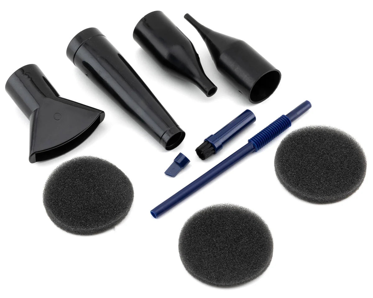 This is the Jet Blaster High Performance Air Blaster from Cow RC. Prepare to be amazed by its solid construction, extreme power, compact size, and remarkable efficiency, making it compatible with most automotive inverters. Compared to typical portable air compressors, the Jet Blaster produces significantly less noise, occupies minimal space, delivers power on demand without the need for a tank refill, and offers similar power output, pumping 70 cubic feet per minute through a minimum reduction nozzle of 1/4".