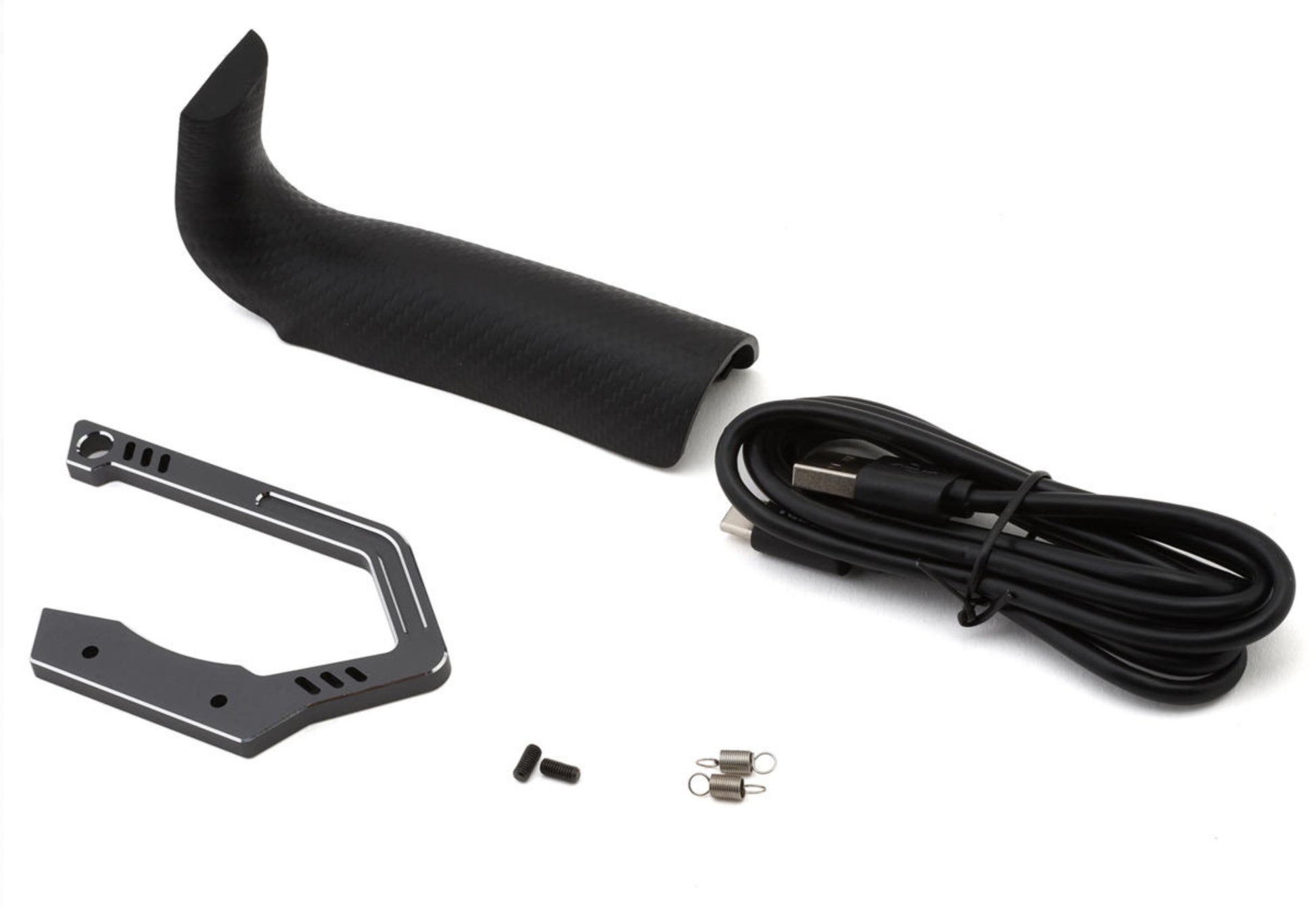Designed for comfort and adaptability, the adjustable trigger return force allows users to fine-tune their throttle response. The handwheel features infinite positioning with physically adjustable travel distance, catering to different driving styles. The sleek metal handle, Kevlar-patterned finish, and rubberized grip provide a premium feel with superior control.