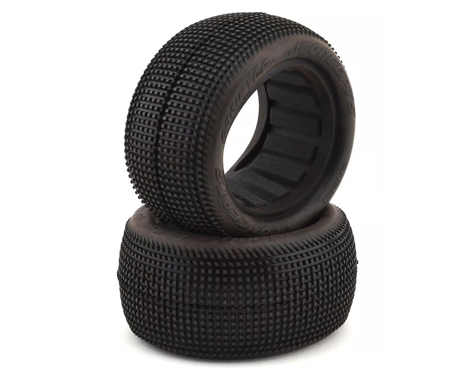 Horizontal traction bars connect several pins near the center of the tire which bonds a critical area for increased push at high-speed. The sidewall area blends nicely into a step-spike feature which helps smooth the transition in bumpy sections and create side-bite. The Sprinters are built on the conventional and popular 2.2” bead and carcass design making them interchangeable. The tire is molded in multiple compounds for different track conditions and each set includes the Dirt-Tech closed cell inserts.
