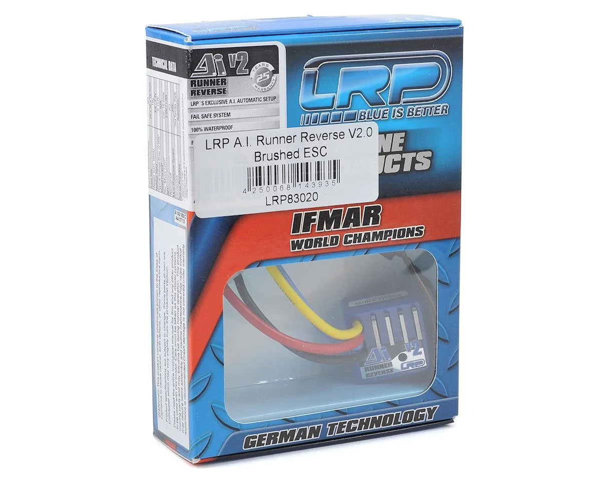 This is the LRP A.I. Runner Reverse V2.0 Brushed ESC. With LRP's Multi-Protection System, A.I. Automatic setup technology, waterproof construction, built in fail safe and 25 year manufacturers warranty, the A.I. Runner Reverse V2.0 is an excellent choice for a brushed motor ESC.