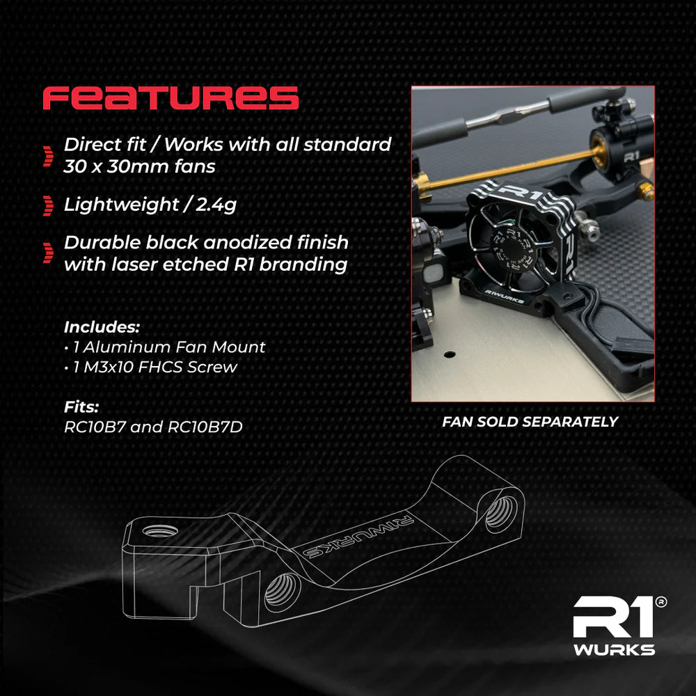 This durable aluminum fan mount offers a secure and lightweight solution for mounting a fan on your B7 when using the R1WURKS 3-Gear Transmission