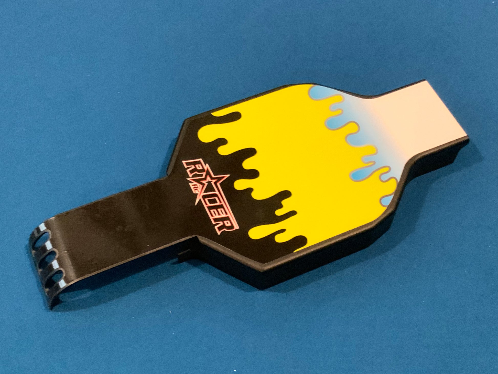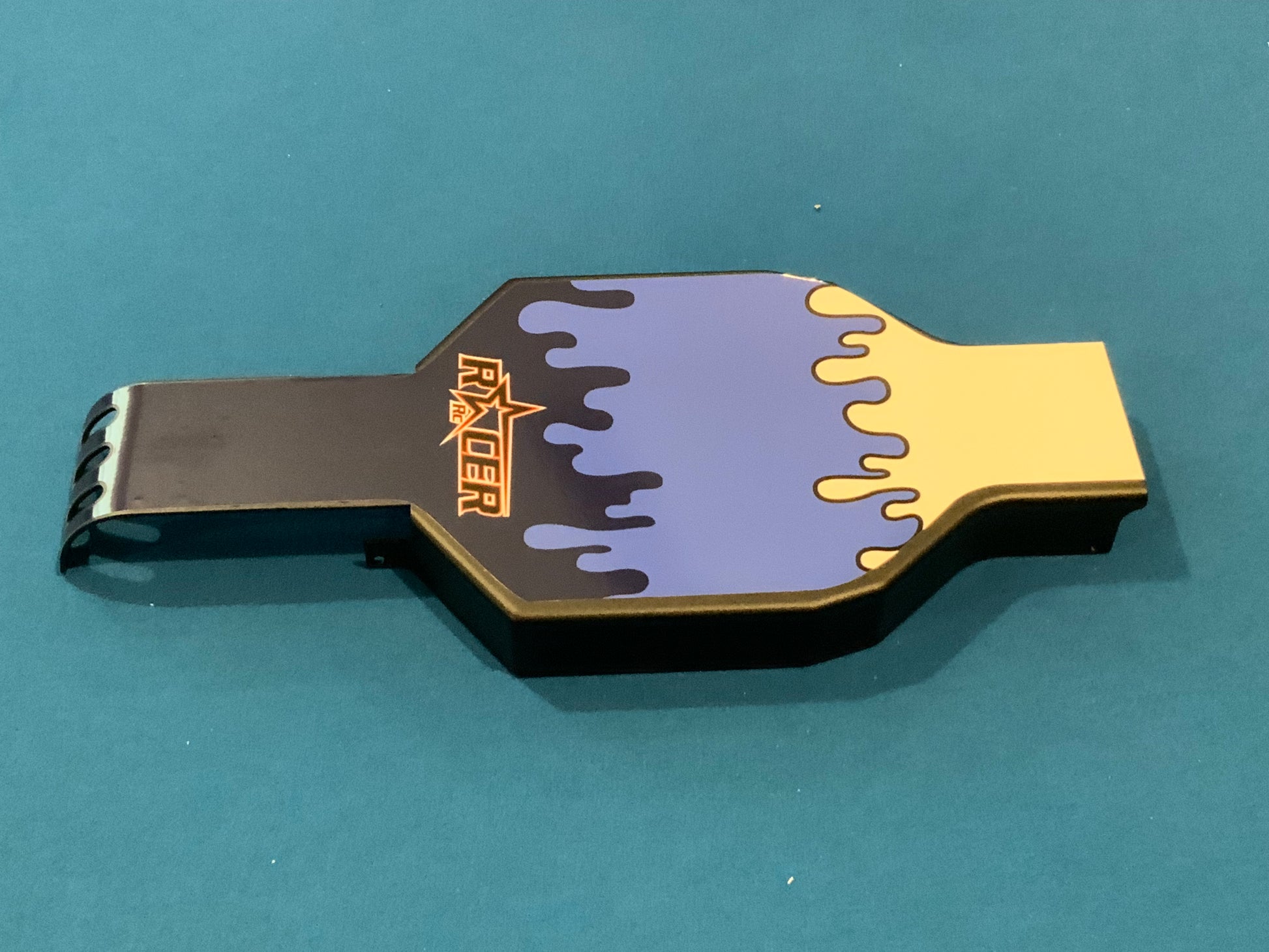 1 chassis skin for Team Associated Classic RC10. Fits Gold clear and worlds car. 2 piece skin for easy application. I piece for the main chassis and the other for the nose