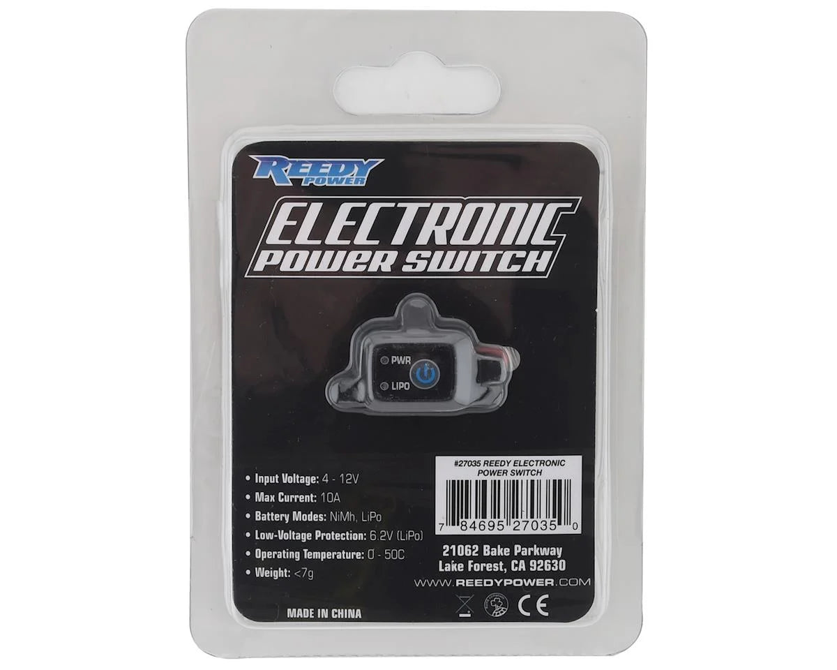 The Reedy Electronic Power Switch is a reliable alternative for 1/8 racers fed up with failure-prone mechanical switches. The LiPo mode option prevents over-discharging your receiver battery while on-board LEDS serve as a battery capacity indicator displaying real-time state of charge. The lightweight and compact design mounts with double-sided tape or use the included transponder mounting bracket, depending on your desired configuration