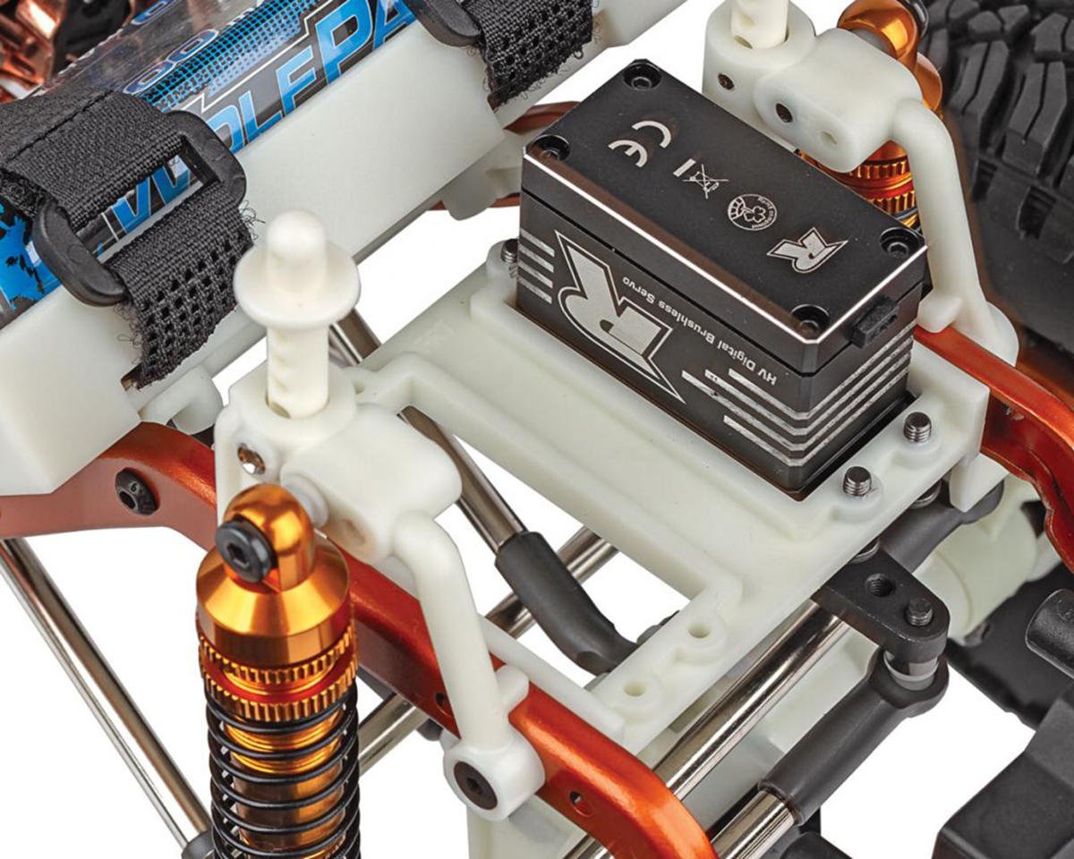 The Cattleman kit features a high-strength chassis layout equipped with BTA (behind-the-axle) steering, aluminum steering plates, and chassis-mounted servo for balanced handling. Threaded, oil-filled aluminum shocks maintain stability across uneven terrain while optimized ball cups and heavy-duty steel links support fluid articulation. Adjustable bumper mounts, rock sliders, and body post positions give users excellent flexibility for customizing the setup. Built for durability and precision, the chassis is ready for upgrades and long-term trail performance.